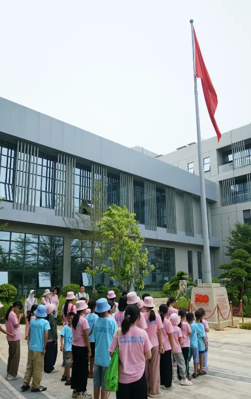 紧接着,孩子们来到了建党百年庆典红旗——070号红旗前。讲解员讲述了981博天娱乐药业集团与庆典红旗的深厚渊源。孩子们听得津津有味,眼中闪烁着对党和国家的热爱与敬仰。